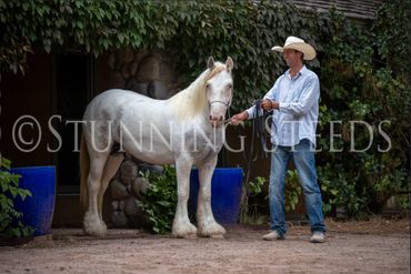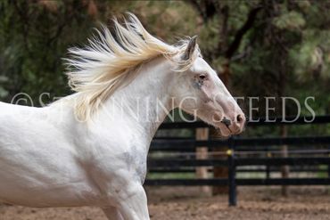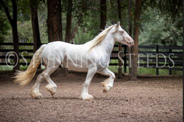 Calidora's Duke of Lions, aka, Henry, was born at Braidmor Farm. He has incredibly unique coloring as he is a white bay sabino! He is the sweetest and most curious foal we have had at our farm. Henry is born with the classic Gyspy Vanner configuration that is so sought after and is already very stout. He comes from the legendary Gyspy Cob lineage. On his dam's side, Henry is rich with world-class and hall of fame Gypsy Vanners such as The Busines (aka. The Boss), Shambo (aka. The Joyce Stallion) (Shambo was a legend as he was the first quality palomino Gypsy Cob), and North Fork Aslan. On his sire's side, Calidora's Duke of Lions hails from the famous SD Farms, with SD Wooly Mammoth and SD Gambler in his lines.